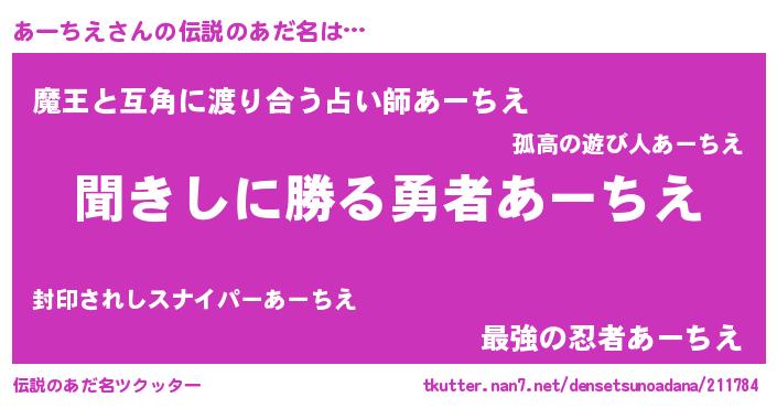 | 意味不明あだ名 | 『自称あーちえ』『ヨモギ科あーちえ属』 |