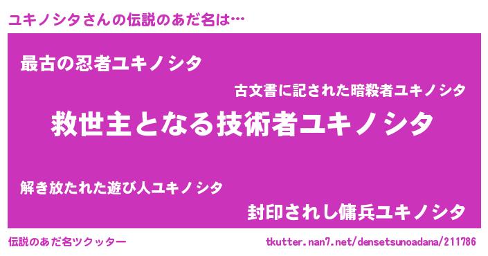 | 意味不明あだ名 | 『住所不定無職ユキノシタ(6歳)』 |