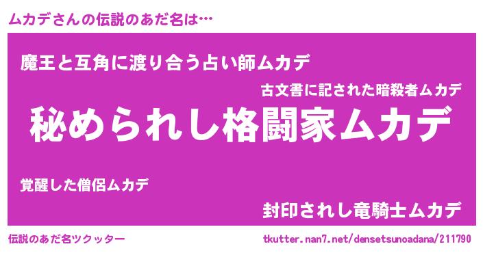 | ヒーロー風カッコイイあだ名 | 『ウルトラムカデマン』『仮面ムカダー』 |