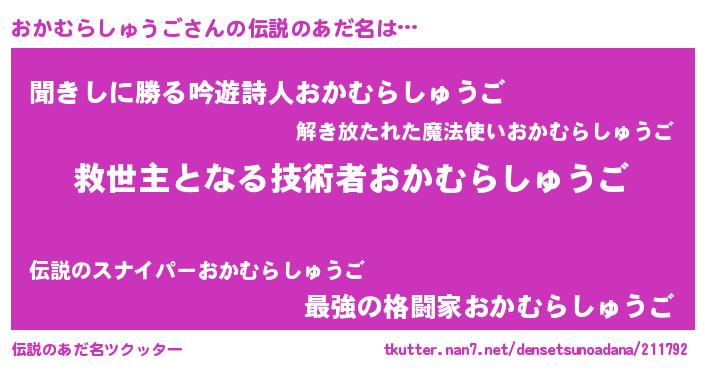 | 胡散臭い通販商品みたいなあだ名 | 『モンドセレクションを受賞したマグネット磁石…その名も「おかむらしゅうご」』 |