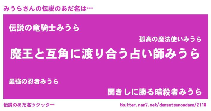 | 女子向けラノベタイトル風あだ名 | 『みうら恋絵巻』 |