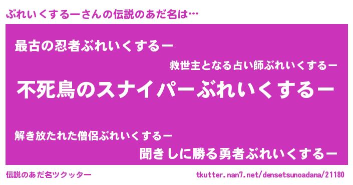 | 胡散臭い通販商品みたいなあだ名 | 『モテモテ間違いなし霊験あらたかなお札…その名も「ぶれいくするー」』 |