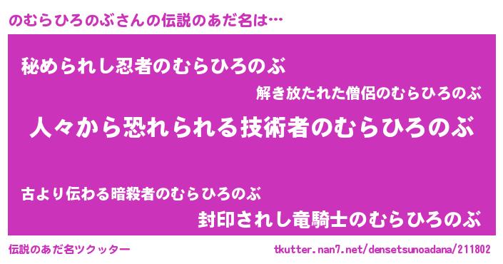 | ヒーロー風カッコイイあだ名 | 『正義の使者のむらひろのぶ』 |