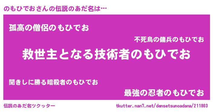 | ヒーロー風カッコイイあだ名 | 『天空の使者のもひでお』『仮面ノモダー』 |