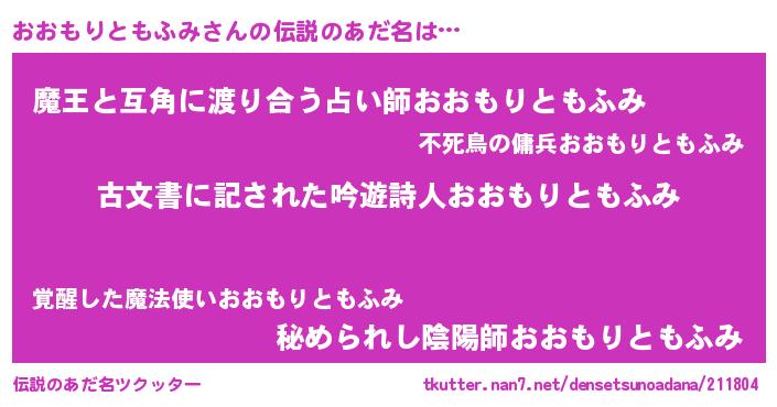 | 男性向けラノベタイトル風あだ名 | 『誰もが恐れるあのおおもりともふみが、ぼくの専属メイドになるようです。』 |
