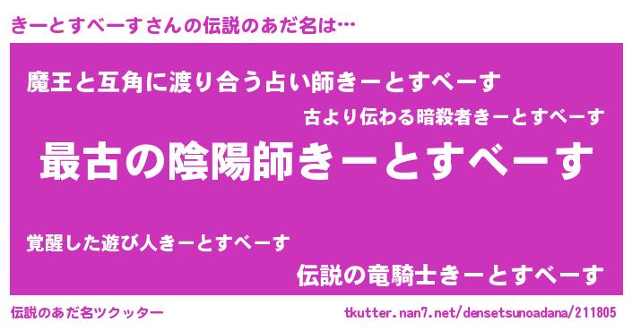 | ファンタジー風あだ名 | 『エターナルキートスベースー』 |