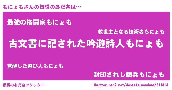 | ヒーロー風カッコイイあだ名 | 『ネオモニョモ』『ウルトラもにょもマン』 |
