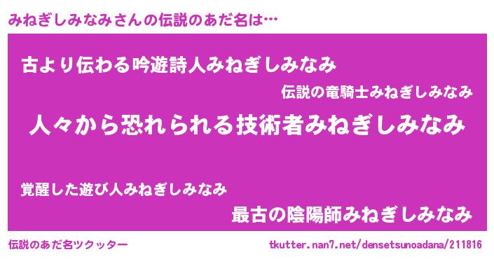| 胡散臭い通販商品みたいなあだ名 | 『100人中100人が認めたマグネット磁石…その名も「みねぎしみなみ」』 |