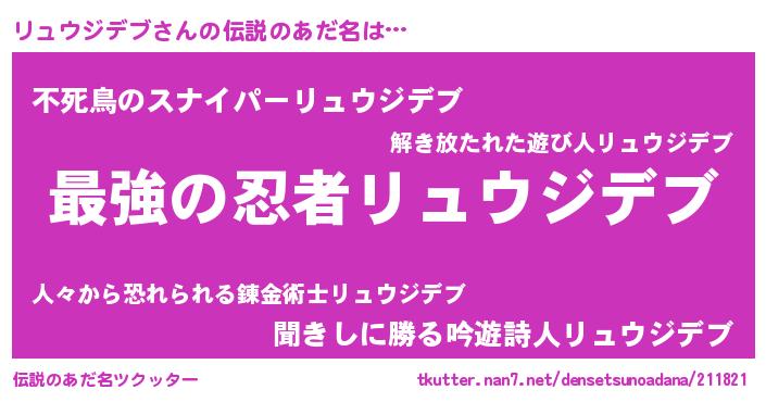 | ファンタジー風あだ名 | 『エターナルリュウジデブー』 |