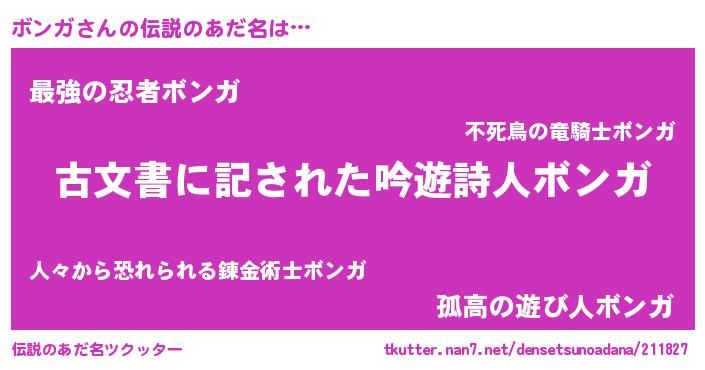 | ヒーロー風カッコイイあだ名 | 『ネオボンガ』『ウルトラボンガマン』 |