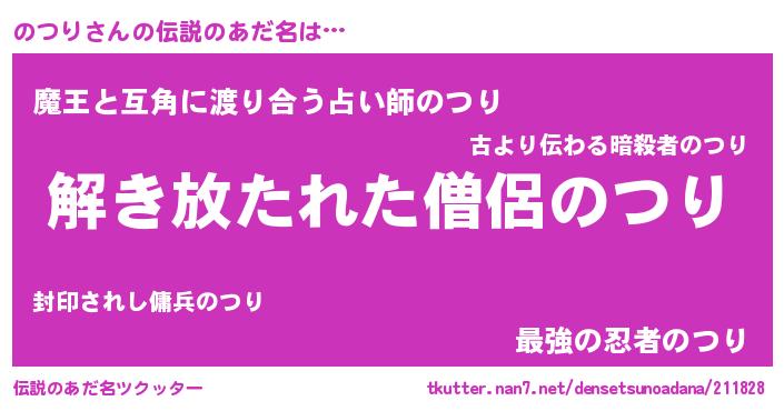 | 女子向けラノベタイトル風あだ名 | 『のつりの卵を拾いまして』 |