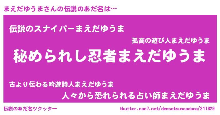 | 意味不明あだ名 | 『まえだゆうまフォーエバー』 |
