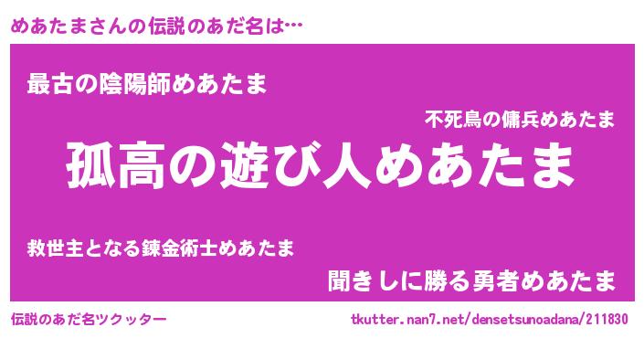 | 女子向けラノベタイトル風あだ名 | 『めあたまは平凡を望む』 |