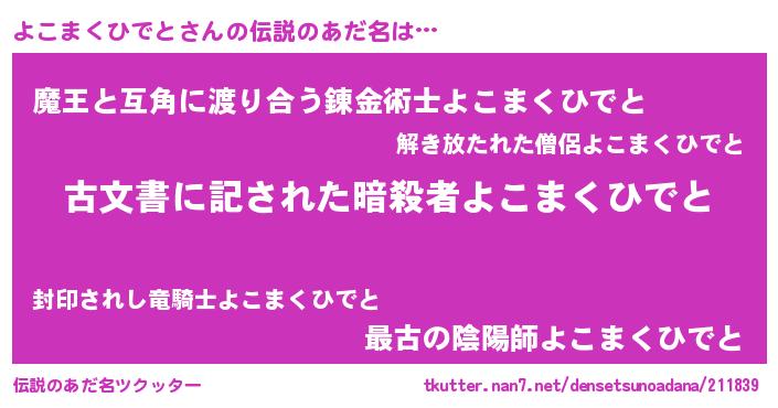 | 男性向けラノベタイトル風あだ名 | 『誰もが恐れるあのよこまくひでとが、ぼくの専属メイドになるようです。』 |