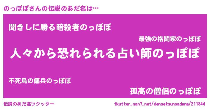 | ヒーロー風カッコイイあだ名 | 『正義の使者のっぽぽ』『ネオノッポポ』 |