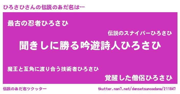 | 意味不明あだ名 | 『住所不定無職ひろさひ(13歳)』 |