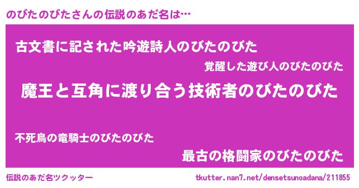 | 男性向けラノベタイトル風あだ名 | 『転生したらのびたのびただった件』 |