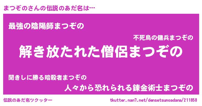 | ヒーロー風カッコイイあだ名 | 『幻影騎士マツ』『ウルトラまつぞのマン』 |