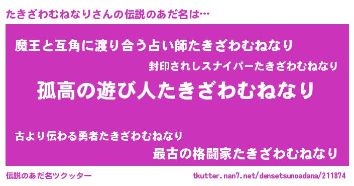 | 胡散臭い通販商品みたいなあだ名 | 『信頼と実績のペンダント…その名も「たきざわむねなり」』 |