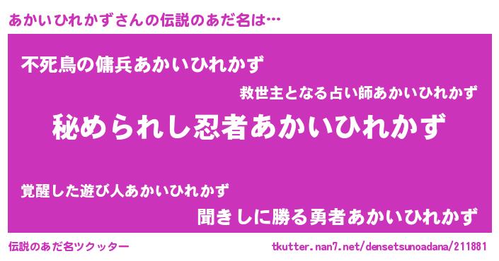 | 意味不明あだ名 | 『自称あかいひれかず』 |