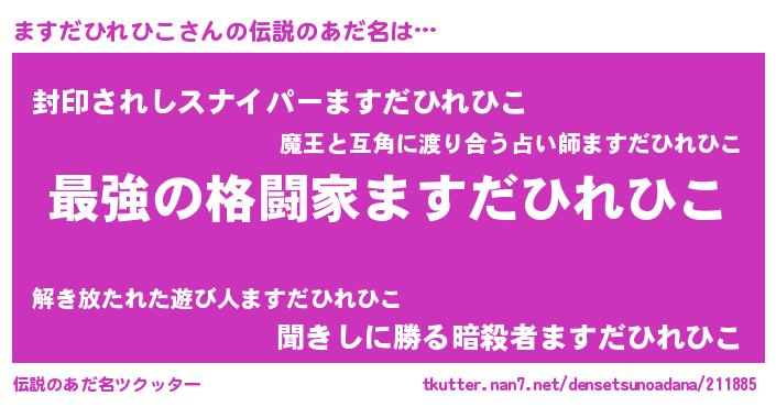 | 男性向けラノベタイトル風あだ名 | 『Re:ますだひれひこから始める異世界生活』 |