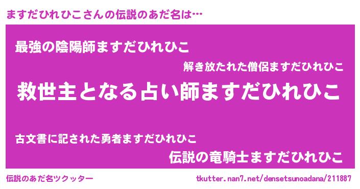| 男性向けラノベタイトル風あだ名 | 『ノーゲーム・ノーマスダヒレヒコ』 |