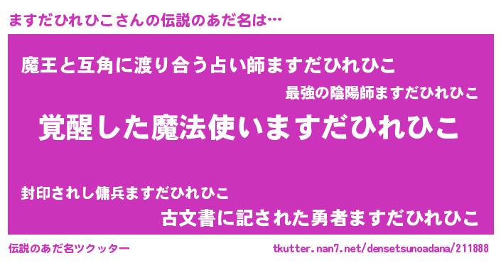 | 男性向けラノベタイトル風あだ名 | 『この素晴らしい世界にますだひれひこを!』 |
