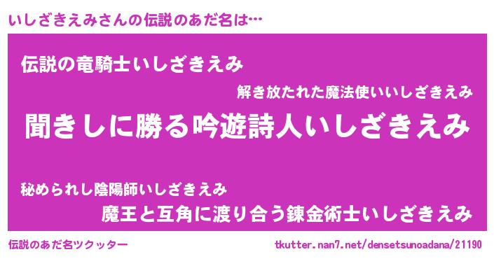 | 男性向けラノベタイトル風あだ名 | 『いしざきえみという概念が存在しない退屈な世界 』 |