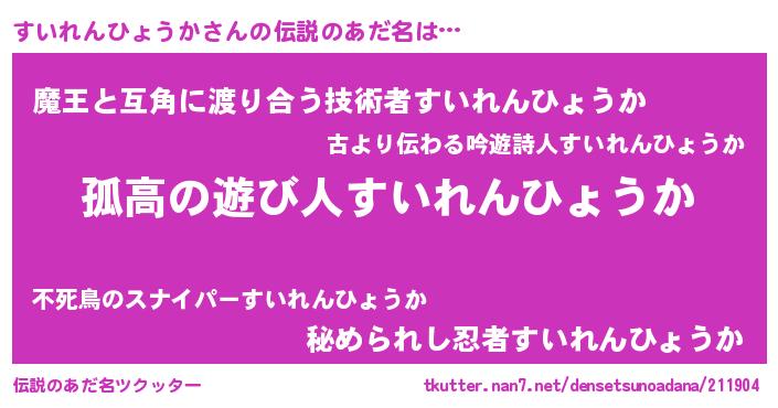 | 意味不明あだ名 | 『住所不定無職すいれんひょうか(89歳)』 |