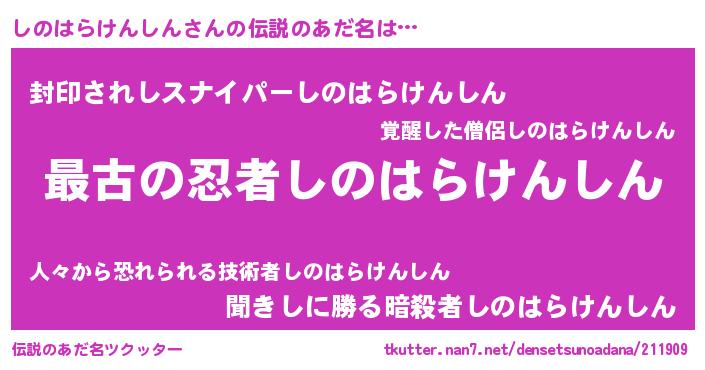 | ファンタジー風あだ名 | 『エターナルシノハラケンシンー』 |