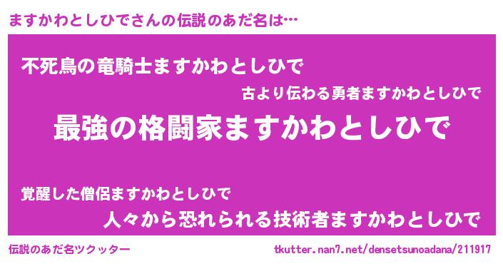 | 意味不明あだ名 | 『ますかわとしひでフォーエバー』 |