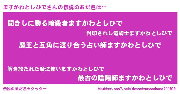 | 女子向けラノベタイトル風あだ名 | 『ますかわとしひで恋絵巻』 |