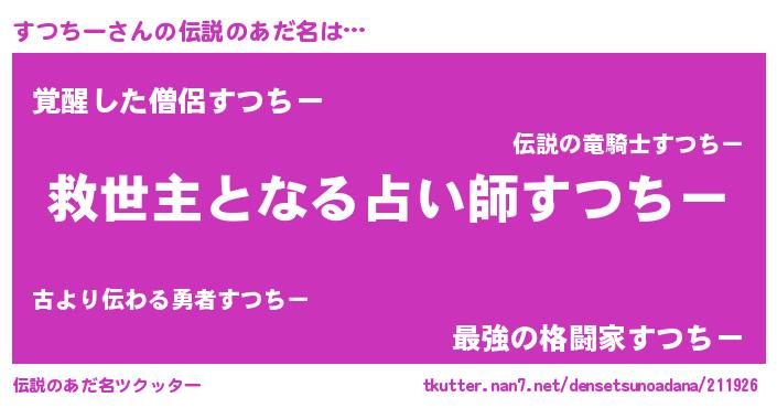 | 意味不明あだ名 | 『ヨモギ科すつちー属』『自称すつちー』 |