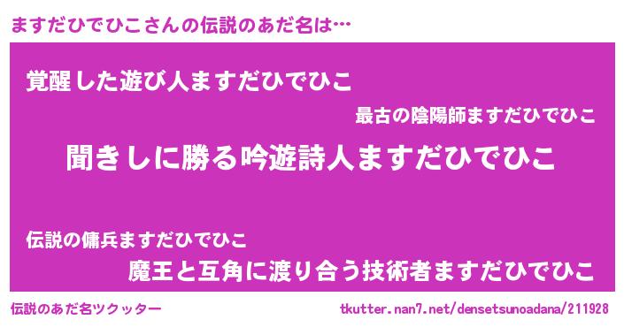 | 男性向けラノベタイトル風あだ名 | 『ますだひでひこという概念が存在しない退屈な世界 』 |