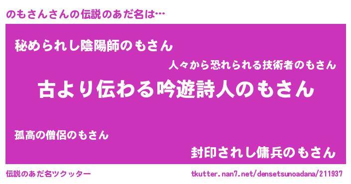 | 男性向けラノベタイトル風あだ名 | 『のもさんという概念が存在しない退屈な世界 』 |