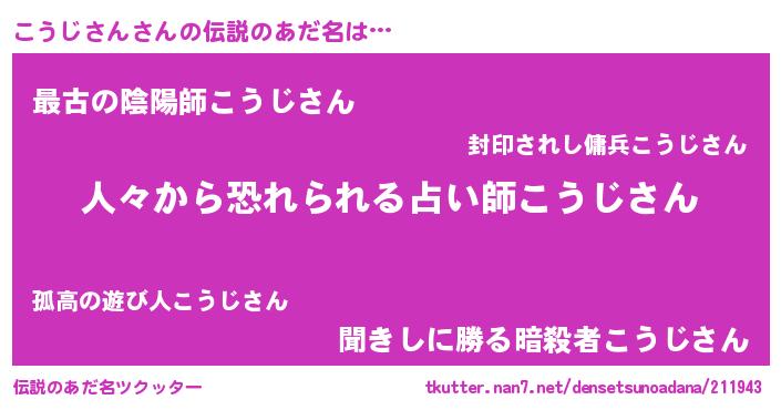 | ヒーロー風カッコイイあだ名 | 『超時空戦士コウジサン』『仮面コウダー』 |