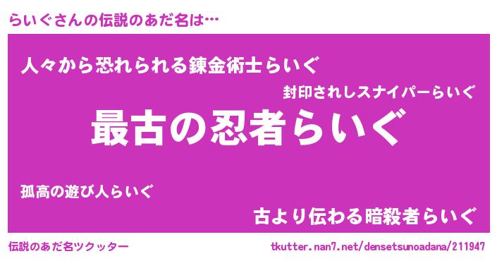 | 恥ずかしいあだ名 | 『ライグデラックス』『らいっちょ』 |