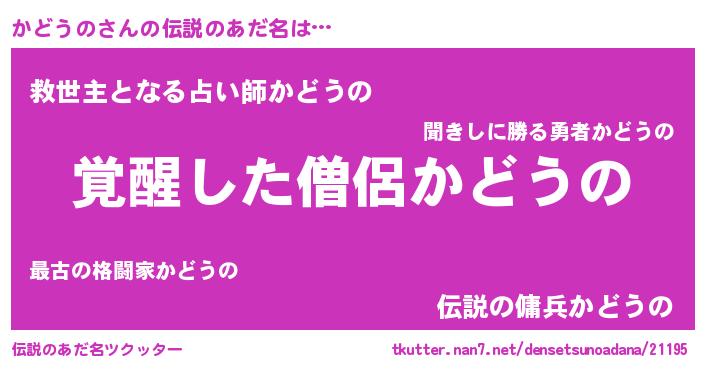 ヒーロー風カッコイイあだ名 | 『炎刃騎士カド』『慈愛の使者かどうの』 |