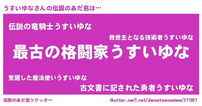 | 意味不明あだ名 | 『うすいゆなフォーエバー』 |