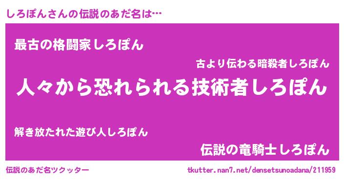| ヒーロー風カッコイイあだ名 | 『ウルトラ戦士シロポン』『仮面シロダー』 |