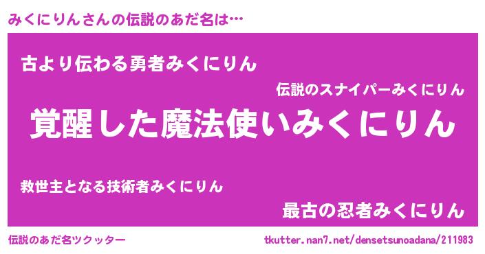 | 意味不明あだ名 | 『とにかく怪しいみくにりん』 |