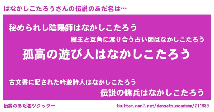 | ポケモン風あだ名 | 『ヒハナカシコタロウ』『ハナゴンZ』 |