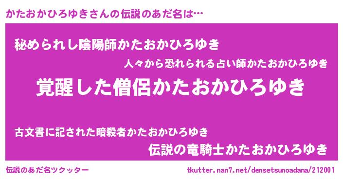 | 意味不明あだ名 | 『とにかく怪しいかたおかひろゆき』 |