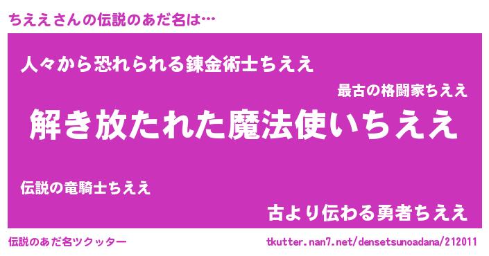 | 意味不明あだ名 | 『とにかく怪しいちええ』『自称ちええ』 |
