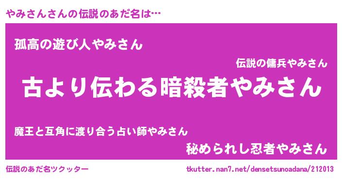 | ヘコむあだ名 | 『やみさん(笑)』『やみっぺ』 |