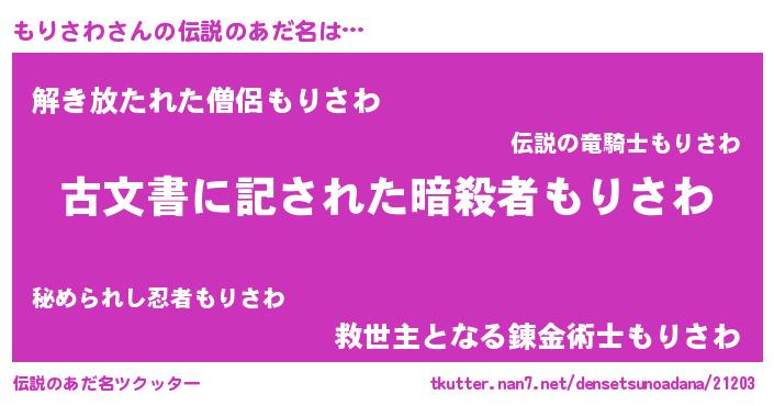 | ヒーロー風カッコイイあだ名 | 『ネオモリサワ』『暗黒騎士モリ』 |