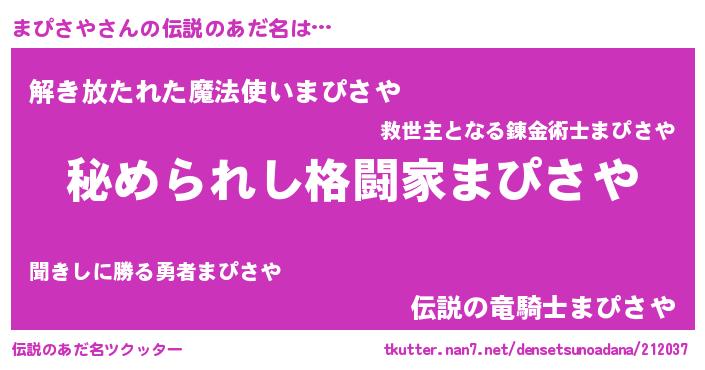 | ファンタジー風あだ名 | 『ユリマピヴァット』『ファントムマピス』 |