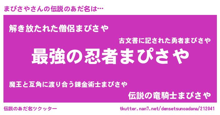 | ヒーロー風カッコイイあだ名 | 『ウルトラまぴさやマン』『魔戒騎士マピ』 |