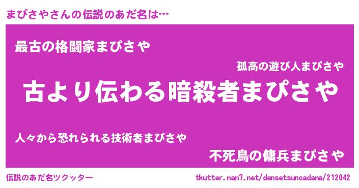 | 胡散臭い通販商品みたいなあだ名 | 『来世でも幸せになれる健康食品…その名も「まぴさや」』 |