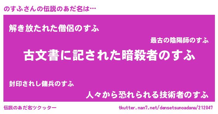 | 意味不明あだ名 | 『永久保存のすふ』『自称のすふ』 |